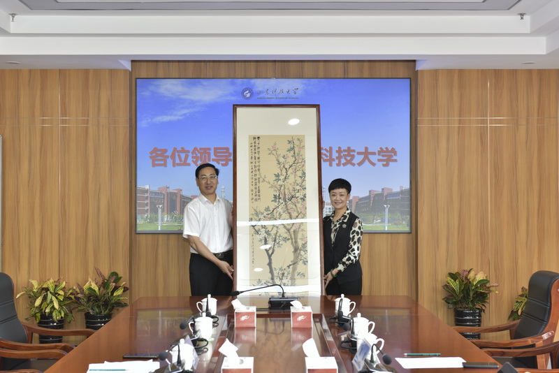 9月24日,晋南校友会会长王青丽,香港校友会秘书长、龙闯集团代表张楠,工民建90级校友梁惠来校捐赠。副校长孙鹤汀出席捐赠活动,合作发展处处长王晓东主持仪式。