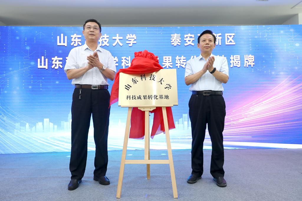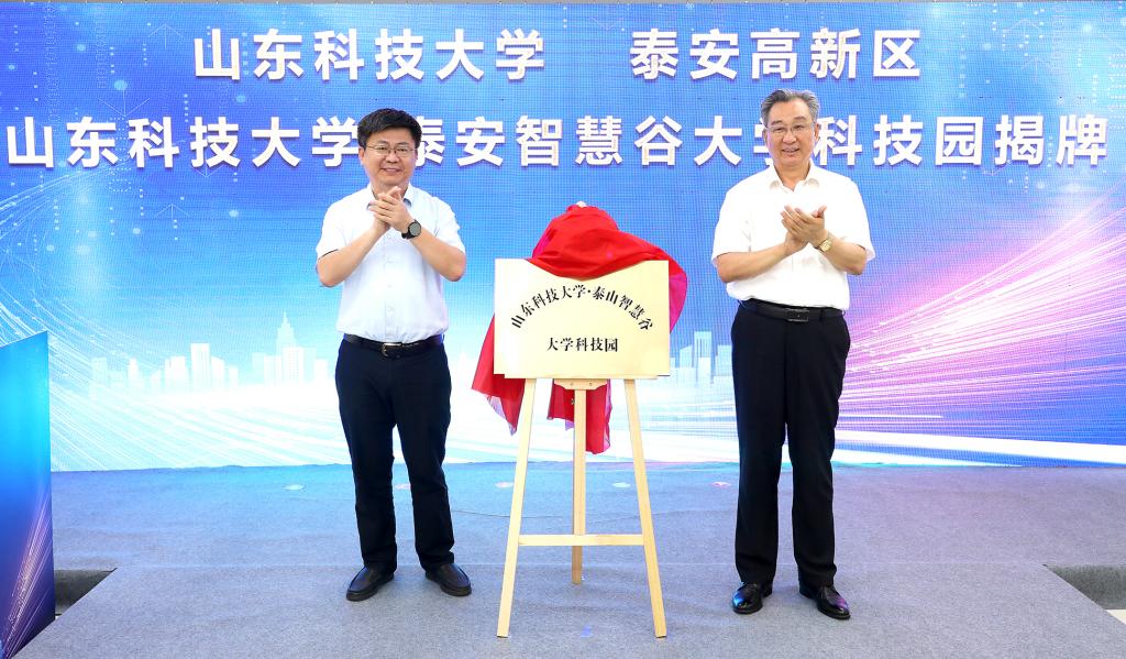 7月9日,学校与泰安高新区、泰安泰山科技有限公司共建泰山智慧谷大学科技园揭牌暨校地企合作框架协议签约仪式在泰山智慧谷举行。校党委副书记兼泰安校区党委书记、管委主任王少鹏,泰安市委常委、副市长姜宁出席仪式。