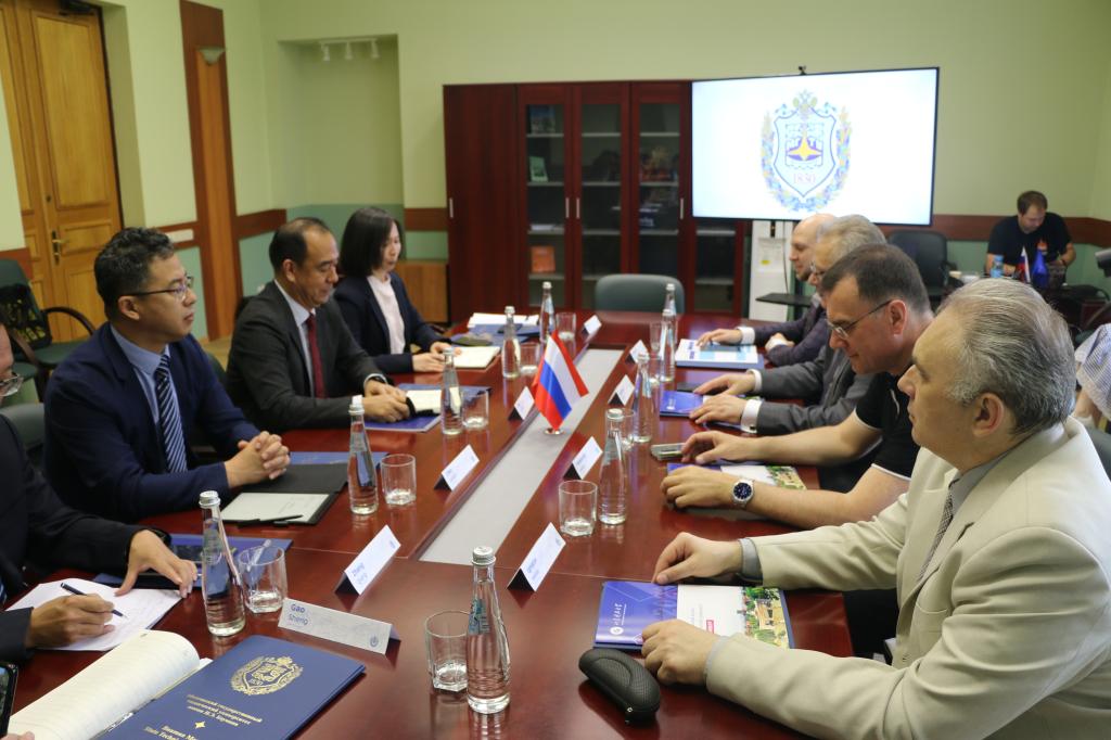在访问莫斯科鲍曼国立技术大学期间,访问团组与该校校长顾问库兹尼佐夫以及国际部、人工智能及控制系统学院、机械制造技术学院负责人等会面。库兹尼佐夫从学校历史、学科设置和国际项目等方面做了介绍,并表示希望双方建立长期合作机制,持续推进双边合作。曾庆田表示,将结合学校的优势学科和特色专业,加强两校在机械制造、无线电电子及激光技术、计算机科学等领域开展教育及科研合作,促进双方合作迈向新的台阶。双方就签署合作协议达成一致意见。此外,访问团组还访问了该校光学研究实验室、计算机科学实验室、计算机校企合作实习中心等,就双方在优势学科领域开展多种形式的合作进行了深入交流。