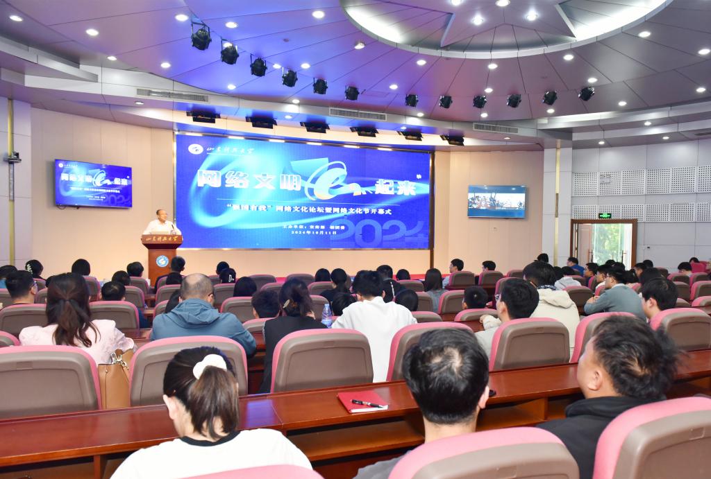 开幕式由校团委书记高一丹主持。高一丹强调,在下一步网络文化建设工作中,要积极探索、守正创新,引导广大师生提升网络素养,进一步打造学校良好的网络文明环境,为落实立德树人根本任务、推动学校高质量发展提供更加有力的文化支撑和动力支持。
