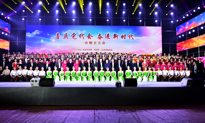校党委常委罗公利、姚庆国、尹华、曾庆良、高建广、张英杰、李克周、陈涛及学校第三届党代会部分代表和师生党员代表共计1300余人集体观看了合唱演出。