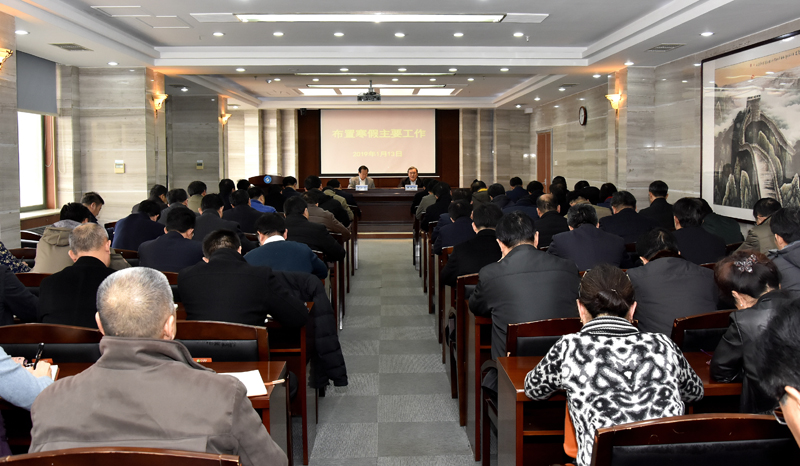 1月13日,学校召开会议部署寒假前后主要工作。校领导罗公利、姚庆国、尹华、王少鹏、刘孟德、夏侯雪娇、曾庆良、高建广、孙鹤汀、张英杰及各部门、各单位党政主要负责人参加会议。青岛校区设主会场,泰安、济南校区设视频分会场。