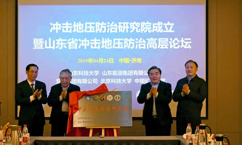蔡美峰、王端武、王福栋、姚庆国共同为冲击地压研究院揭牌。
