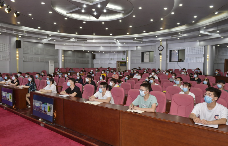 部分师生代表在逸夫讲堂现场聆听