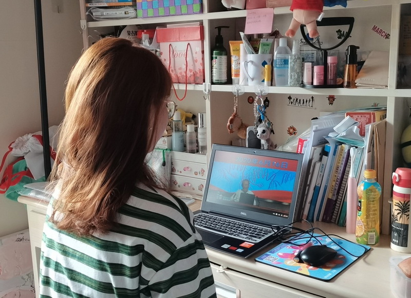 学生在宿舍收听收看网络直播