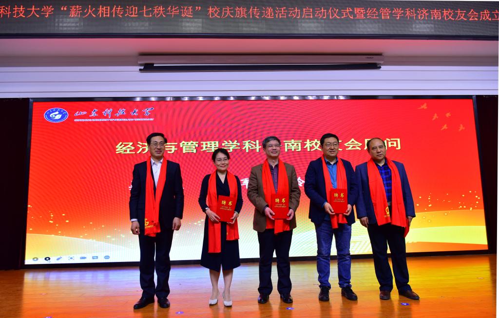 在经济与管理学科济南校友会成立大会上,姚庆国向经济与管理学科济南校友会新当选会长授旗,孙鹤汀等与会领导分别向校友会顾问、副会长、秘书长、副秘书长、理事代表颁发聘书。孙鹤汀代表学校校友总会对经管学科济南校友会的成立和新当选的会长、副会长、秘书长及各位理事表示祝贺,对与会校友、来宾表示欢迎,与校友分享了母校蒸蒸日上的发展成就。