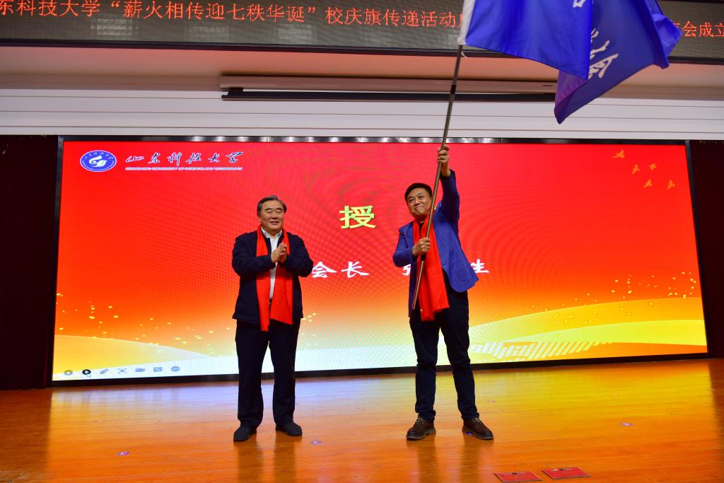 姚庆国向济南校友会授校庆旗