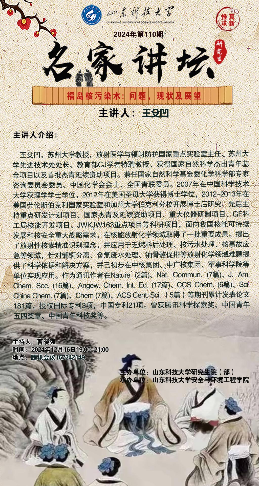 “名家讲坛”2024年第110期:福岛核污染水问题,现状及展望(总1004期)