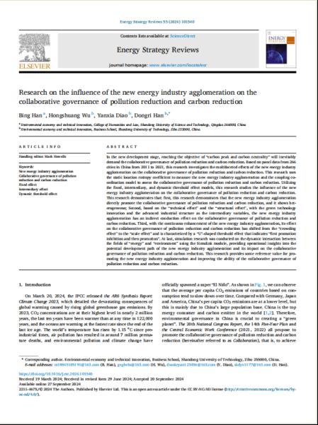 近日,日韩人妻无码一区二区三区久久99_日韩精品一区二区三区中文在线_无码日韩精品一区二区免费_久久久91精品国产一区二区三区_亚洲精品久久久一区黄无码_国产91精品一区二区麻豆网站_成人国内精品久久久久影院文法学院讲师韩冰在《Energy Strategy Reviews》发表题为“Research on the influence of the new energy industry agglomeration on the collaborative governance of pollution reduction and carbon reduction”的文章。